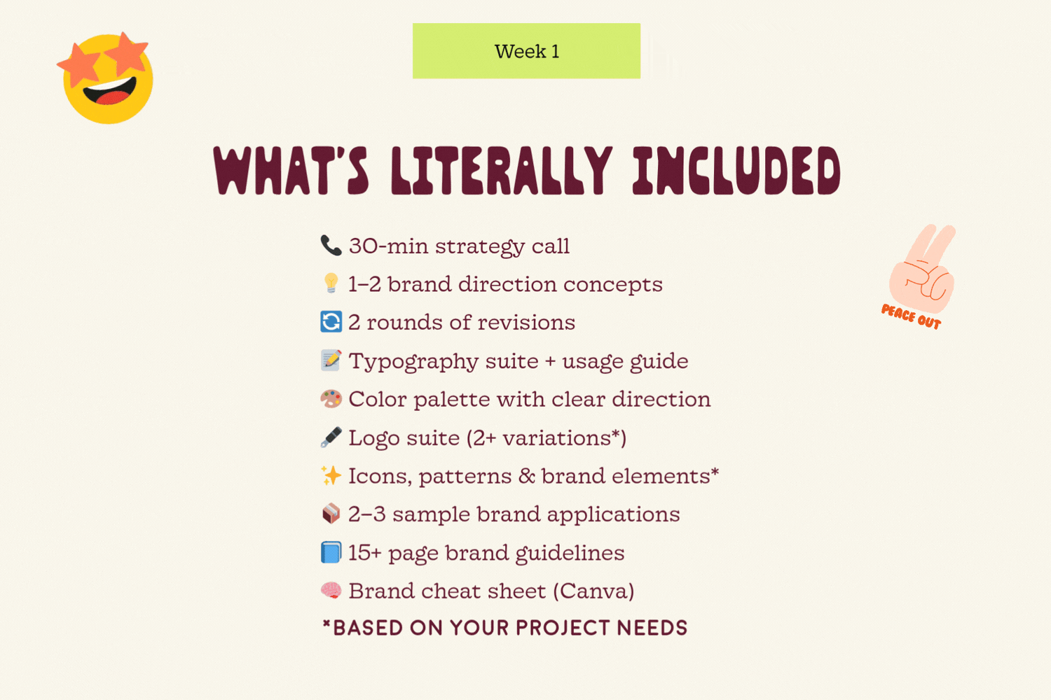 Before we start, there are a few things weโll need from you, like imagery and key content direction. Youโll also have a bit of light prep to make sure we can move efficiently once your project begins.