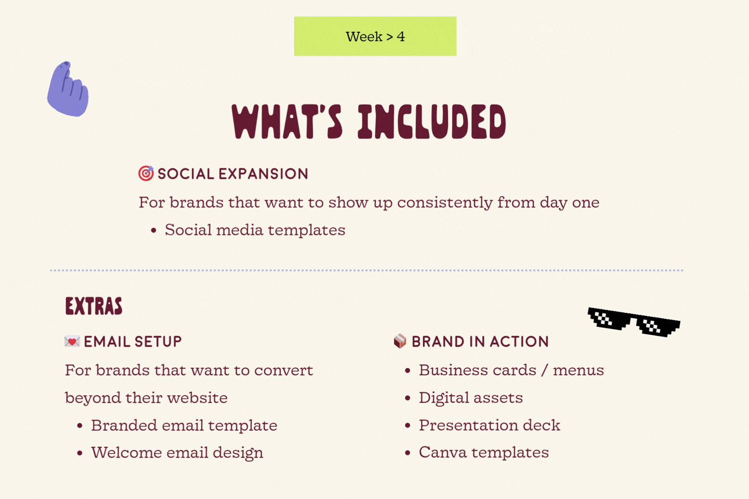 Then we apply your brand across key touchpoints, like social media templates and digital assets, so everything feels consistent from day one.